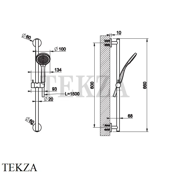 Штанга в комплекте с душевой лейкой с защитой от известкового налета, шланг 1,50 м. Gessi Via manzoni