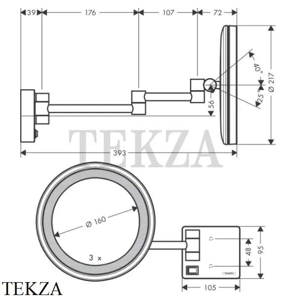 Зеркало косметическое для бритья поворотное Hansgrohe AddStoris со светодиодной подсветкой.