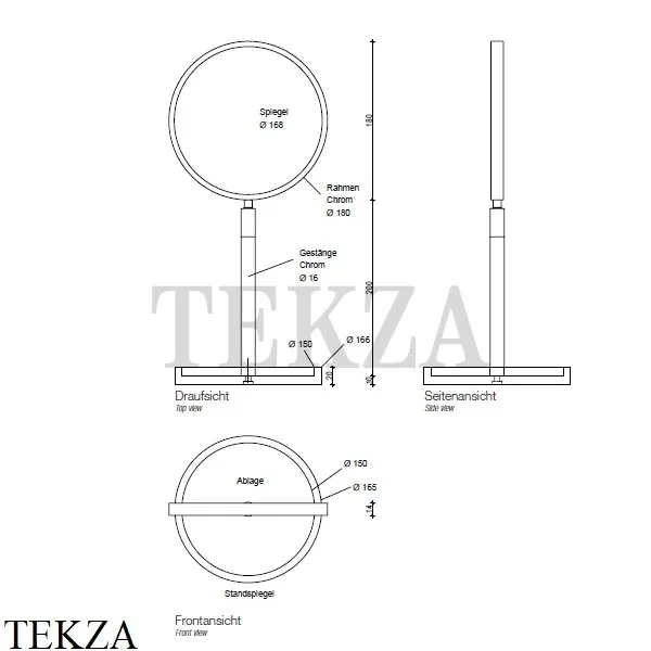 Настольное косметическое зеркало 1х-4х кратное увеличение Decor Walther STONE BLACK.