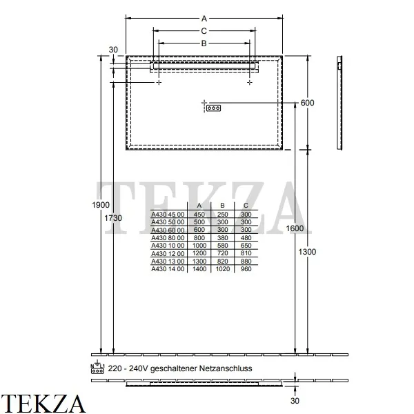 Стоимость указана за зеркало с подсветкой A430A400.
