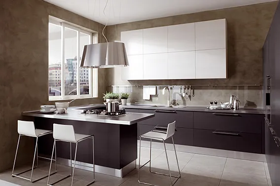 Модерн — направление в дизайне, которое характеризуется природными мотивами, натуральными мягкими оттенками и плавными изогнутыми линиями предметов. Выполнить кухню в таком стиле — задача не из простых, но специалисты нашей компании обожают выполнять сложные проекты.